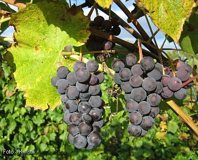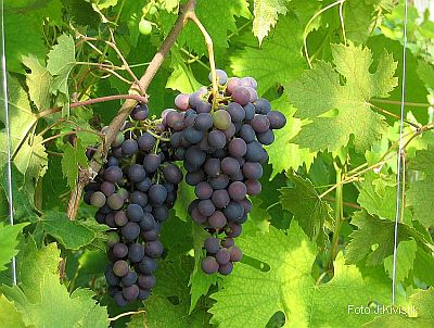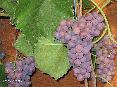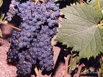 Berries | big, with mat coating. Flesh is a bit jellied. Leaves regular, with 5 lobes, slightly tomentose on lower side.