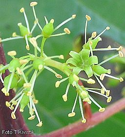 Viinapuu õitsemine Paljude sortide õite ehitus (vasakul) võimaldab isetolmlemist. Sortidel 'Madeleine Angevine' ja 'Guna' on tolmukad pööratud emakast eemale (paremal), mis vähendab tolmlemist ühe õie piires. Sellised sordid vajavad täiendavat tolmeldamist.