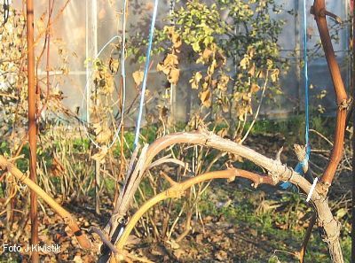 Sügisel lõigatakse vanemaid viinapuid tugevasti, et saada jämedaid ja saagivõimelisi aastakasve. Välja lõigatakse viljakandnud oksad koos neil olevate peenikeste võrsetega ja kõik korgistumata võrsed (vasakul). Hästi talvituvad vaid korgistunud võrsed (paremal püstine).
