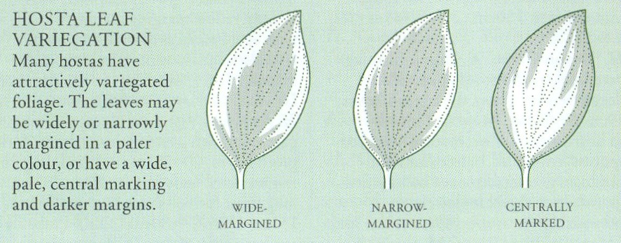 Joonis 2. Hosta lehtede servavärvuste variatsioonid (Brickell, 2008. lk 541).