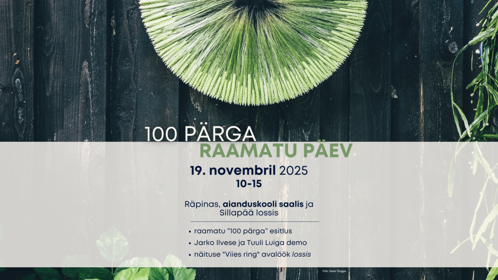 13.30 – 15.00 raamatu esitlus ja müük, sõnavõtud, tänamised, näituse “Viies ring” tööde presenteerimine, aianduskooli saalis